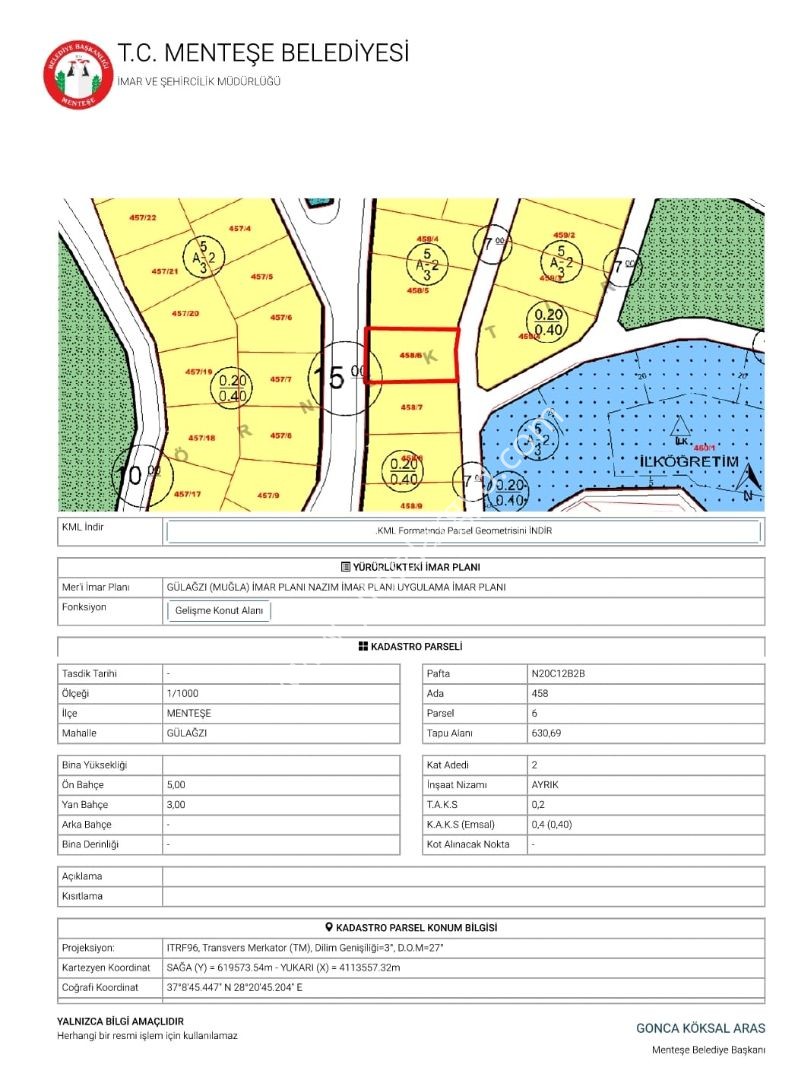 MUĞLA – GÜLAĞZI MAH. 630M2 SATILIK ARSA