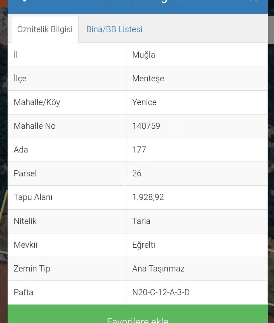 MUĞLA YENİCE MAH. – SATILIK 1928.92m2 TARLA