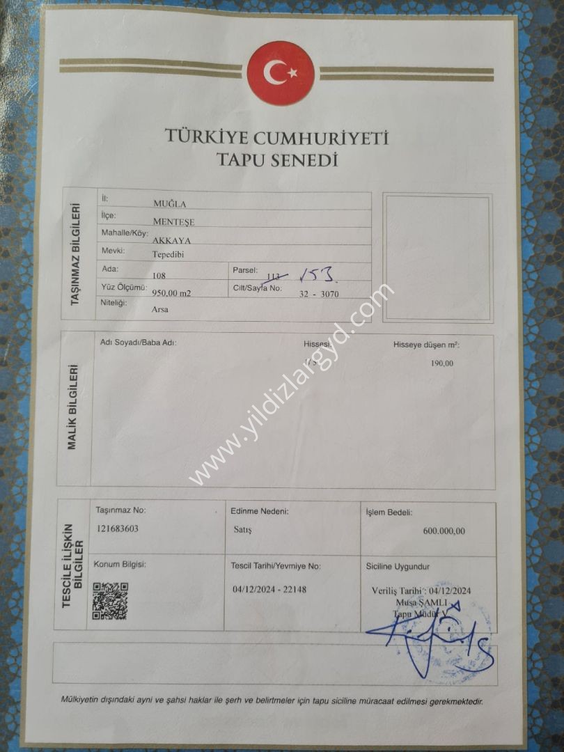 🏷️ MUĞLA MENTEŞE AKKAYA’DA SATILIK 1/5 HİSSE TİCARİ ARSA