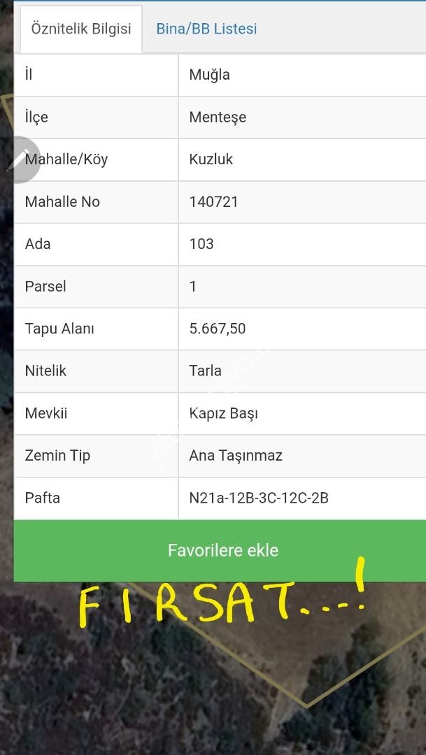 MUĞLA KAFACA MAH. SATILIK 641 M² ARSA